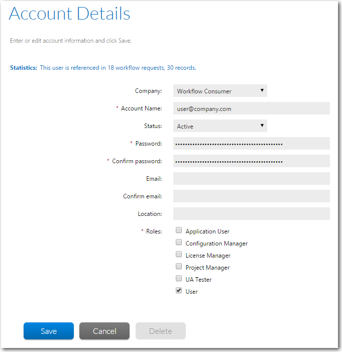 You may view or update the details of any of the accounts visible on the Account Administration page.