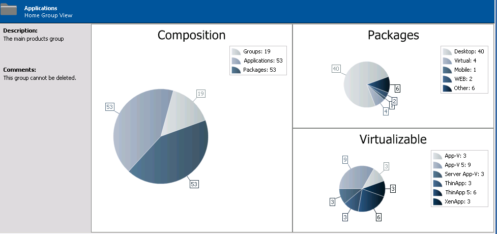 Packages—Displays the number of packages in each of the following categories: installers (Windows Installer packages and legacy installers), virtual packages, mobile apps, and other.
