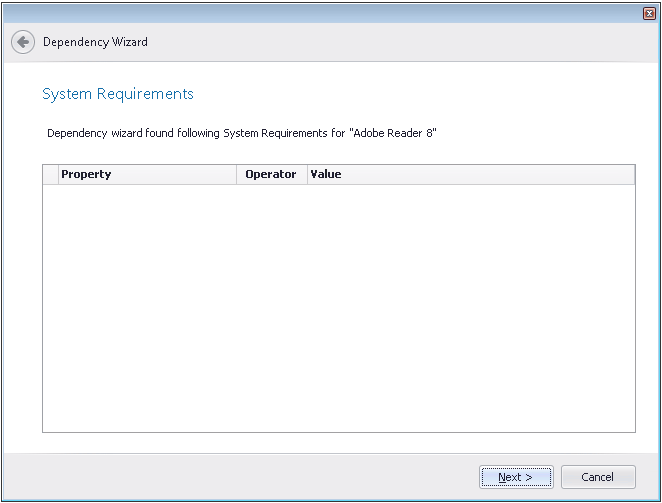 If you are performing a dependency scan, the System Requirements panel opens and lists any system requirements that were detected for the selected package.