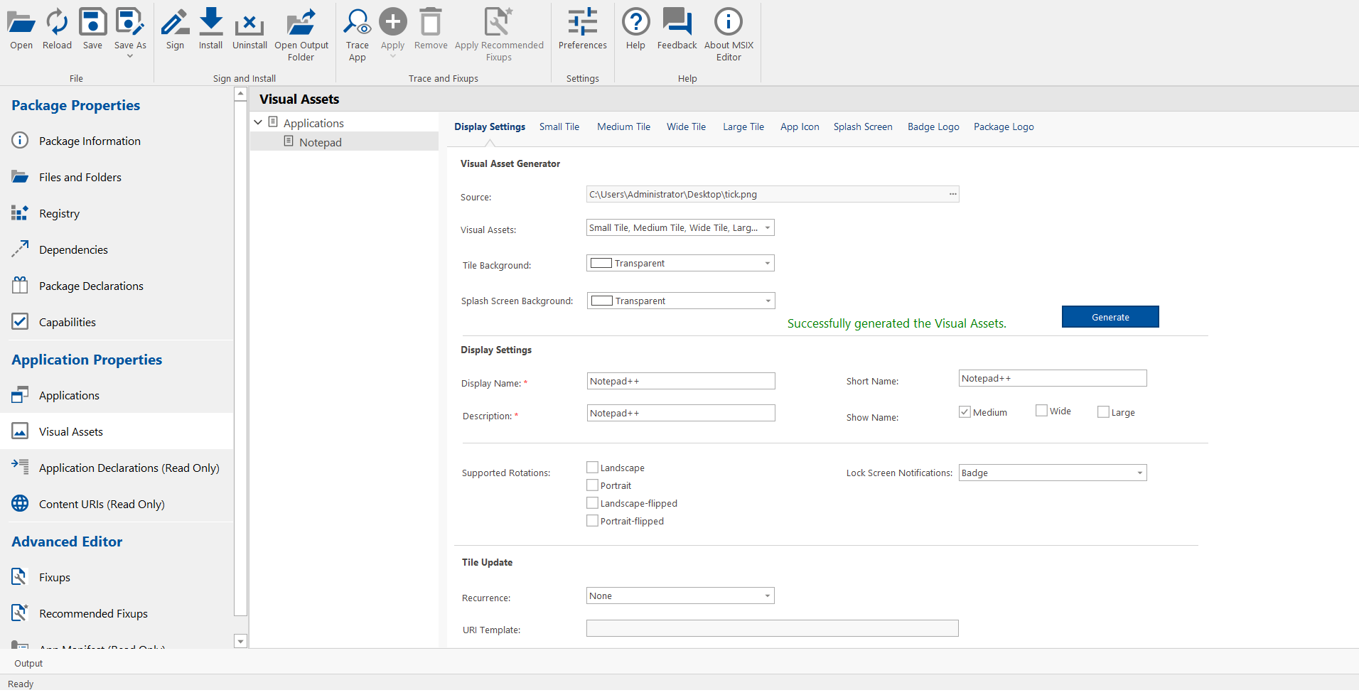 1. Click on Visual Assets view in the left pane under Application Properties.